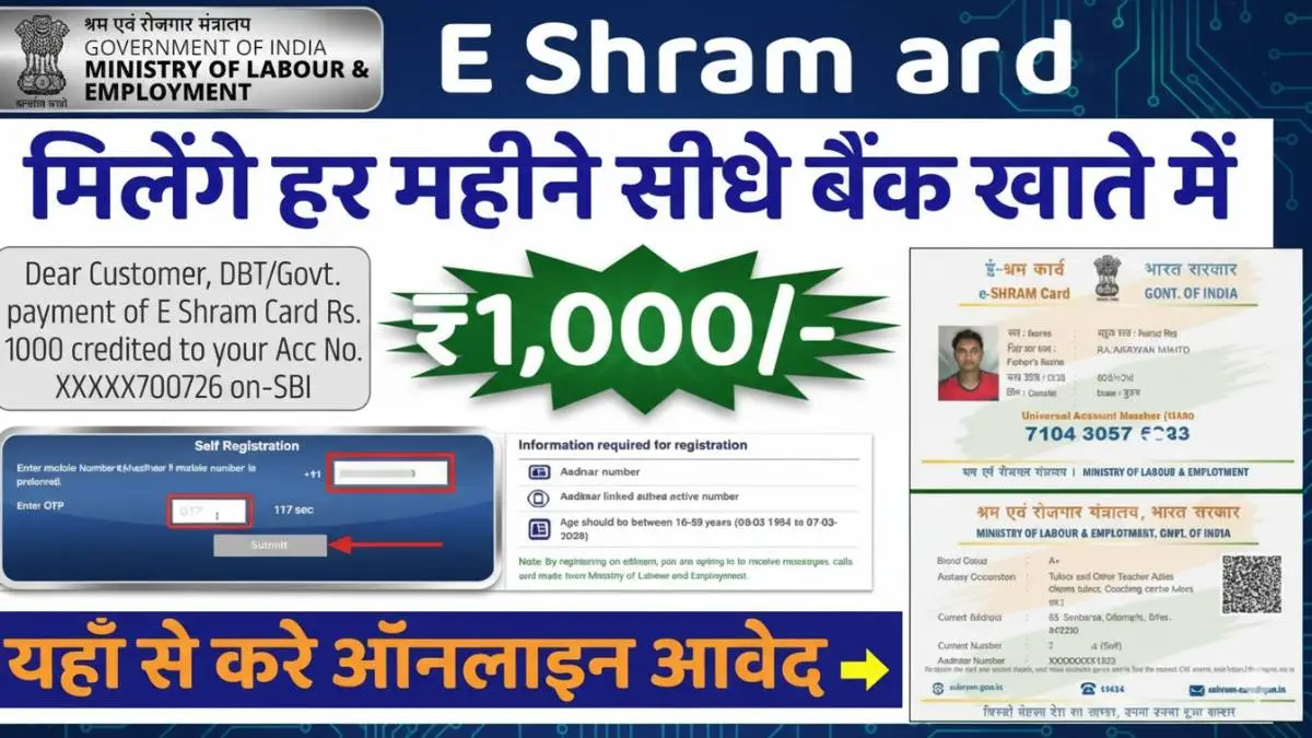 E Shram Card Bhatta Apply: ई-श्रम कार्ड के ₹1000 रुपए खाते में आना शुरू